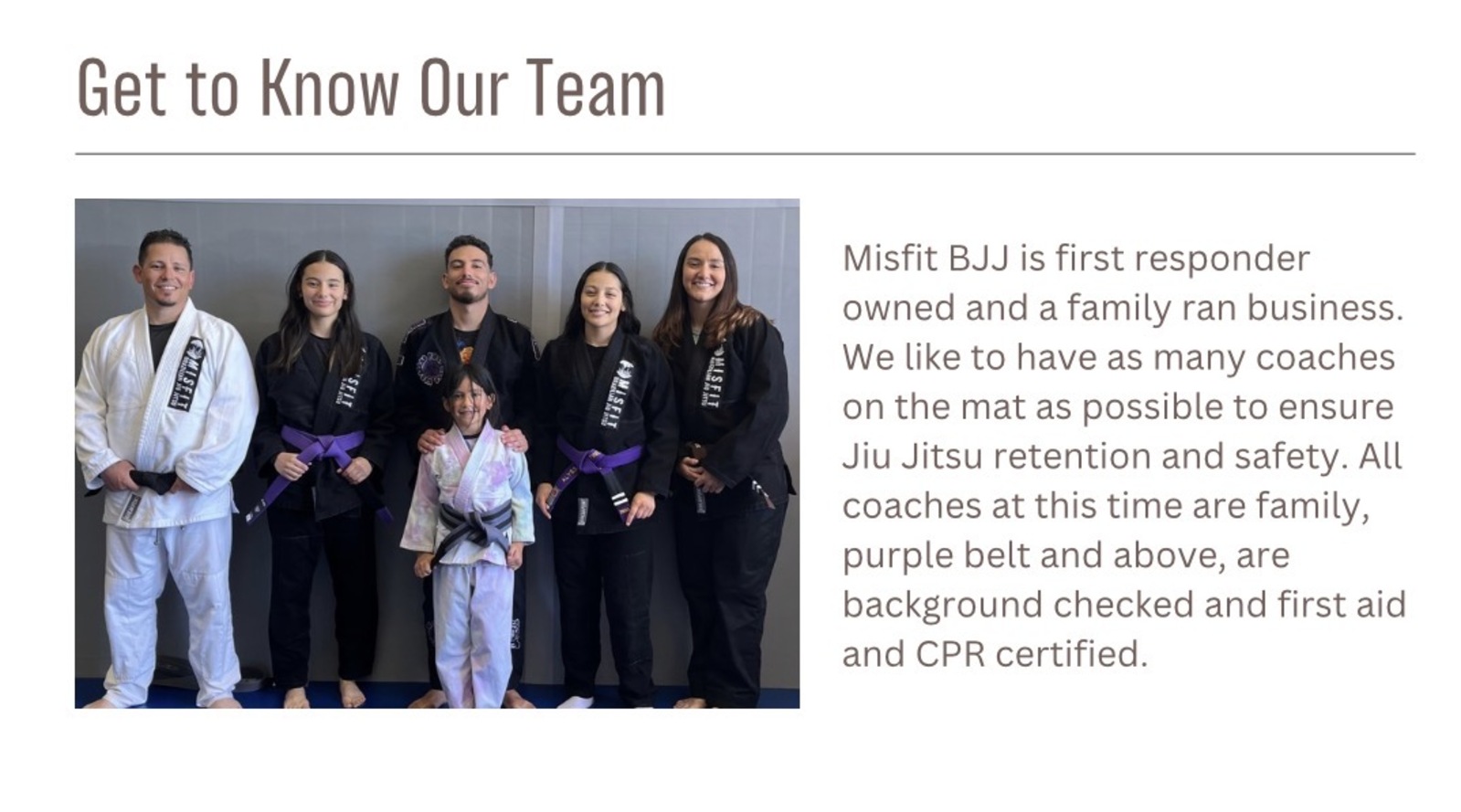 All Misfit Coaches are CPR and first aid certified.
